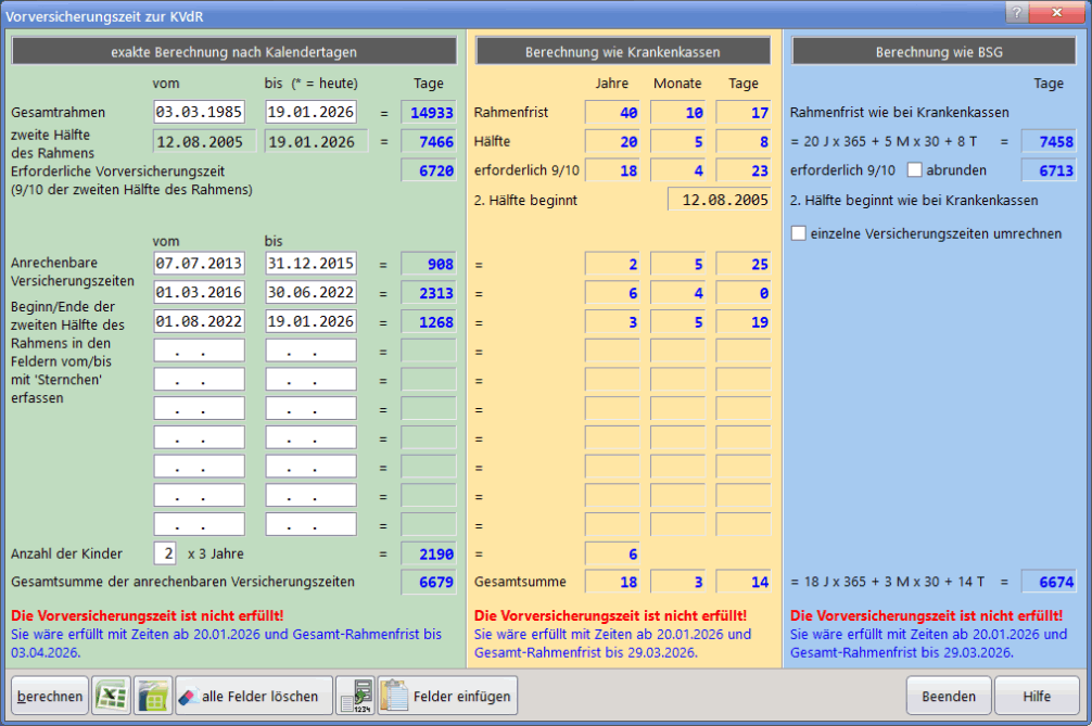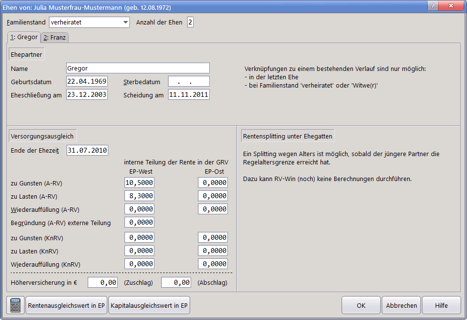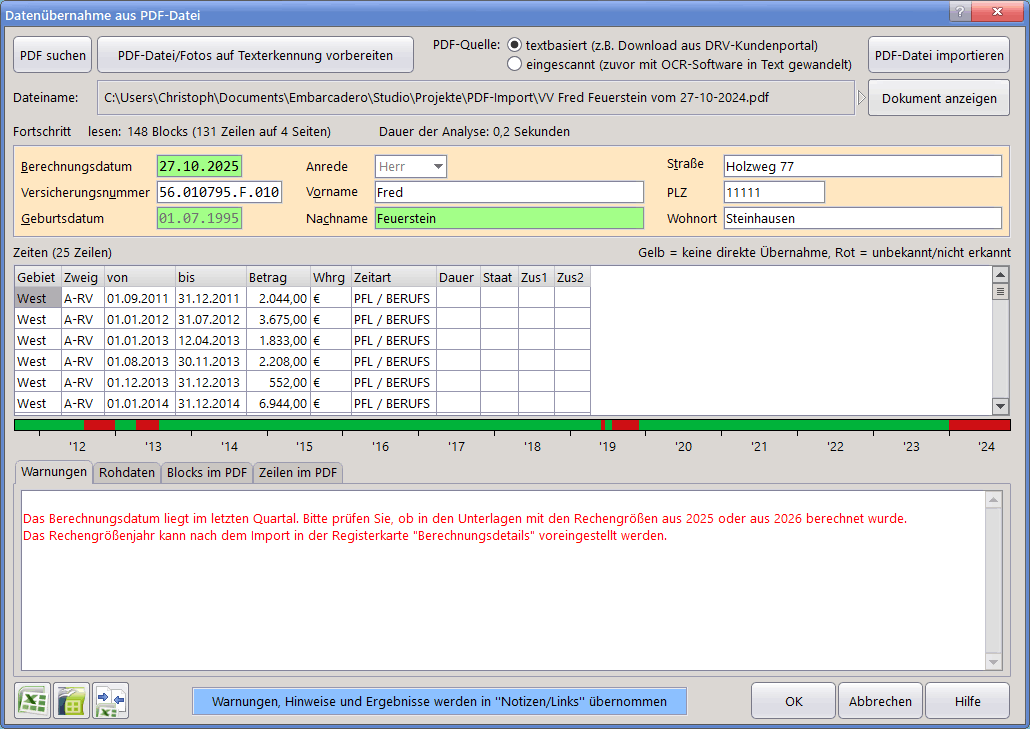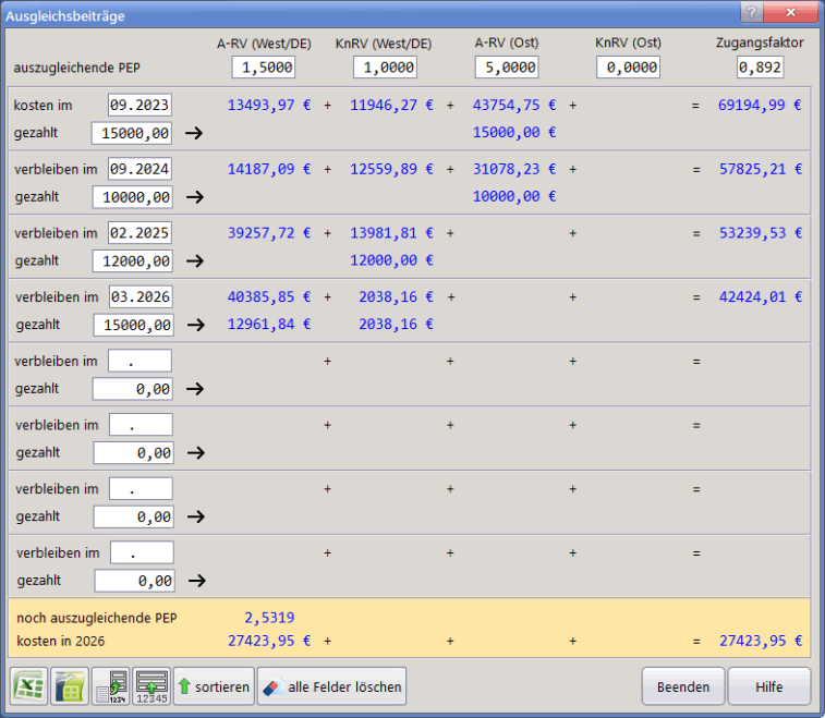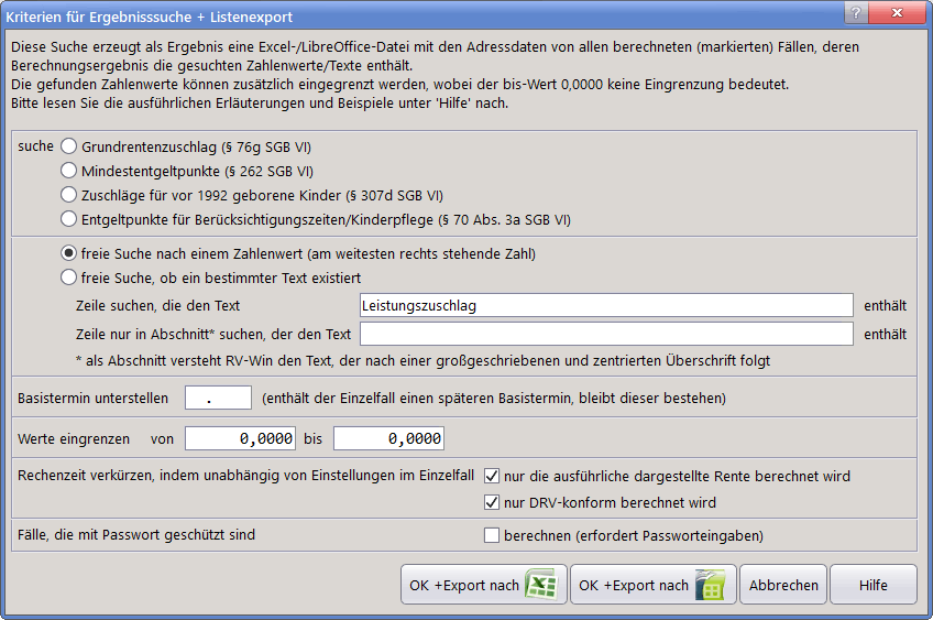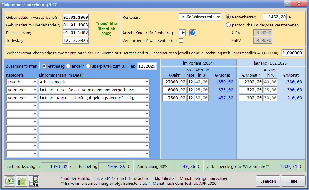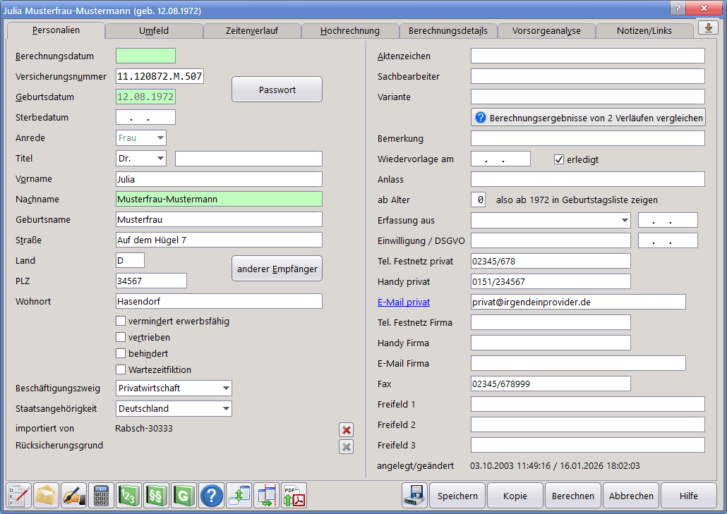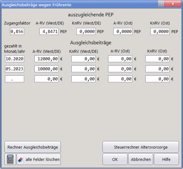 Ausgewählte Beispielabschitte: Grundberechung, Hochrechnung, Frühverrentung (Kosten für Ausgleichsbeiträge), Grundrentenzuschlag, beitragsgeminderte Zeiten, zwischenstaatliche Berechnung (pro rata), Diagramm zu möglichen Altersrenten, Beratungshinweis zu Mindestentgeltpunkten